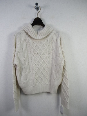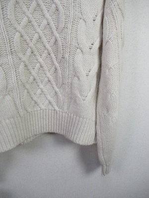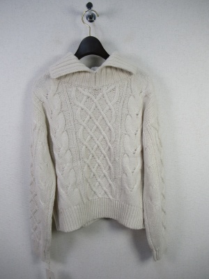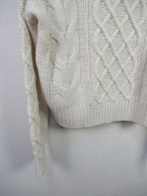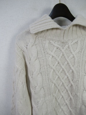 ケーブル編みザックリニット オフタートル 後ろにスリット入り 裾は絞れるデザイン