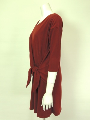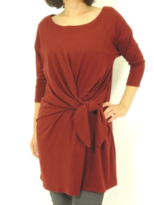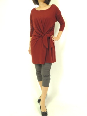 結び目に向かったギャザーがポイントのカットソーワンピ。