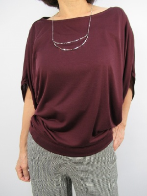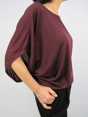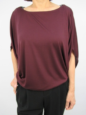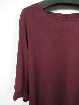 落ち感のある素材なので裾は腰で止まるデザイン、ドレープがかったシルエット