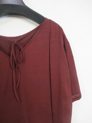 スクエアデザイン ドロップショルダー 背中はV開きでリボンデザインあり 袖は広がりがある(タック入り)