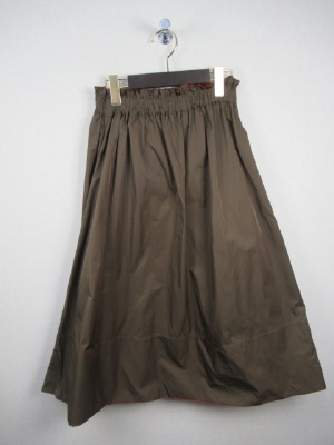 ウエストギャザーゴムのリバーシブルスカート ミモレ丈 裏の色はそれぞれベージュとネイビーはカーキ ボルドーはブラウンカーキ 手洗いOK