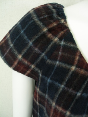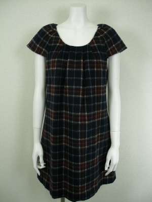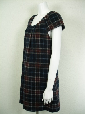 チェックのミニワンピース。タイツやレギンスを合わせて。インナーにタートルを重ねても可愛い。