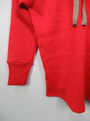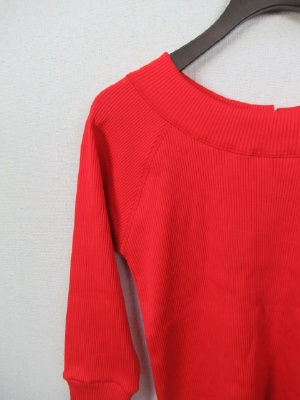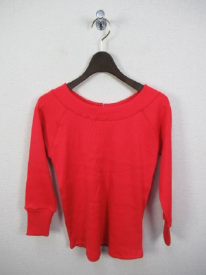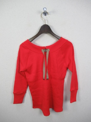 テレコのカットソー、首の後ろにグログランテープの飾り(白と赤はベージュ、紺は白)、七分袖、ラグラン、手洗い可能