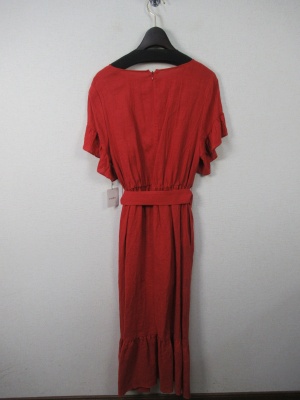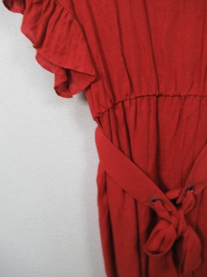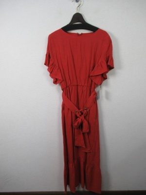 マキシ丈のワンピース 袖はフリル 裾は下の方で切り替えティアード 後ろファスナー 共のサッシュリボン付き(取り外しできます) ペチコート付き 手洗い可能