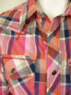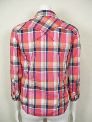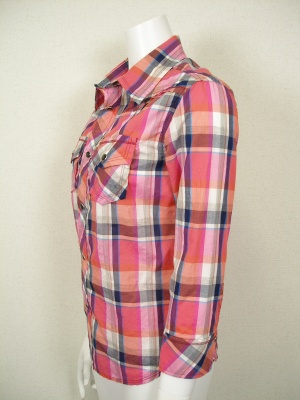 洗いざらしで着たいカジュアルなシャツ。ボタンを閉じて着る場合、細身なのでバストが大きめの方は胸がキツイかもしれません。前を開けて羽織りにしてもいいですね。