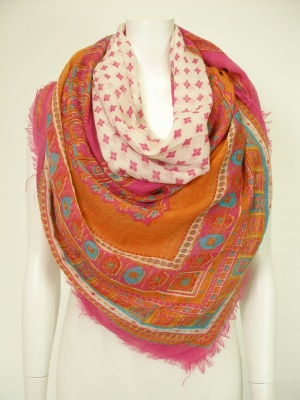 アフガン巻きも肩掛けもしやすい大判の正方形ストール。