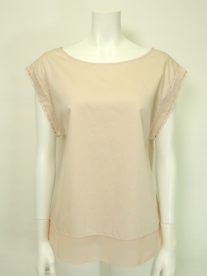 袖口のブレード、後ろのリボン、裾のシフォン・・・甘口ディテールが可愛い、mimi&rogerのブラウス。