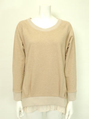 裾からのぞくフリルが可愛いスウェットのトップス。