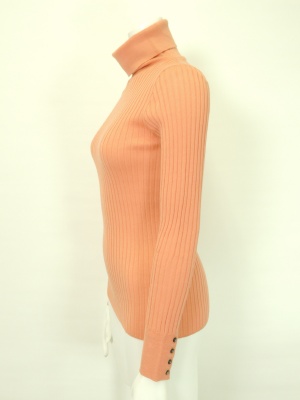 タートルネックはリブ編みではなく、少しゆとりがあります。