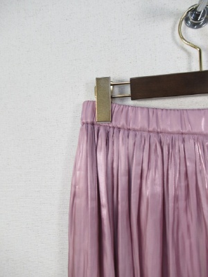 ウェストゴムのギャザースカート、光沢感のあるサテンのような生地、裏地付き 新色追加・・ベージュと表記した色はピンクがかったベージュです。
