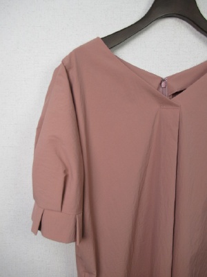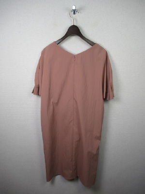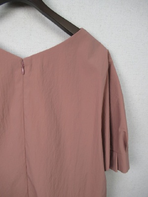 浅くV空きになった胸元 前はタック入り 後ろファスナー 袖はタックフリル ペチコート付き 手洗いOK
