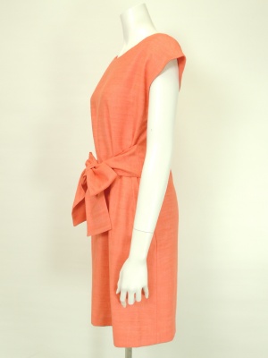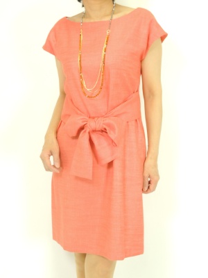サイドに縫い込まれたベルトを前で結びます。