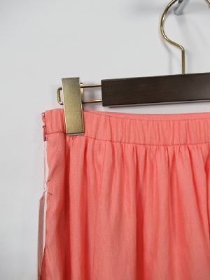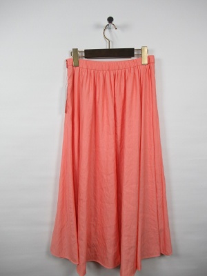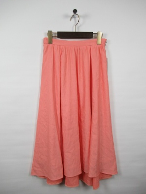 前後差のあるロングスカート ウエストゴムのギャザータイプ ポリエステルですが麻の風合いに似た生地です 裏地あり 横ファスナー