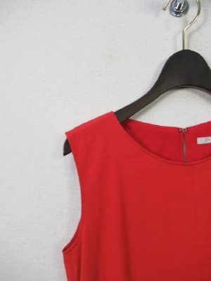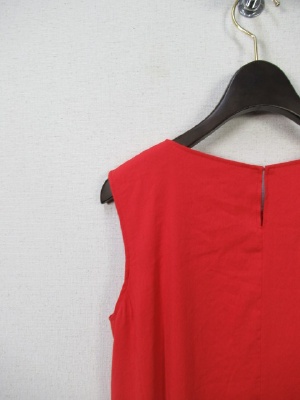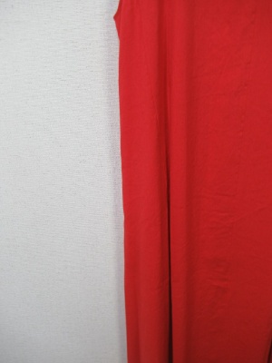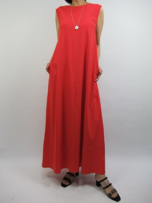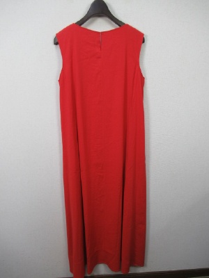 マキシワンピース 裾は広がったシルエット ノースリーブで首の後ろにカギホック 胸元あたりだけ裏地つき 脇ポケット