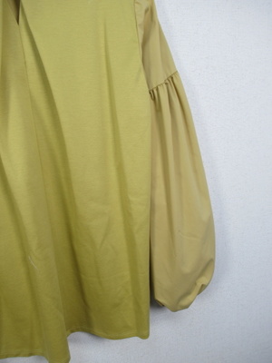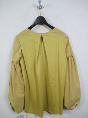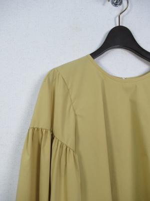 後ろ身頃カットソー生地 ドロップショルダーボリューム袖 前後差ありの裾 手洗い可能 後ろネックのところカギホック