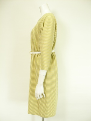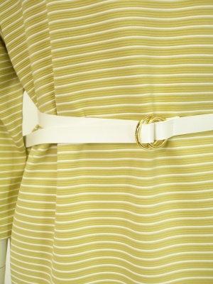 付属の白ベルトでウエストマークして。ベルトを使わない時はロングネックレスなどをプラスするとオシャレです。