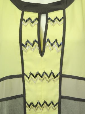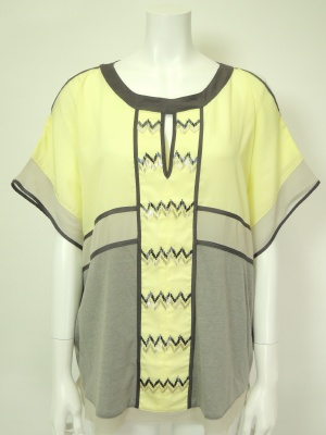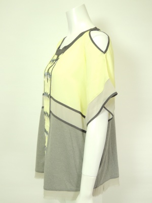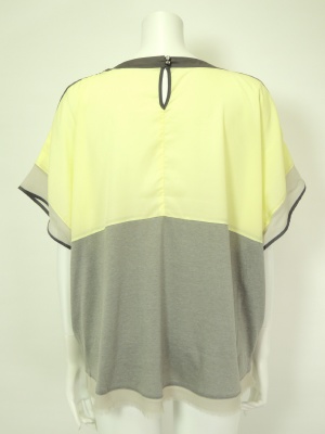 切り替え配色の上と中は少し透けるシフォンで、下はジャージー素材。