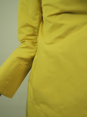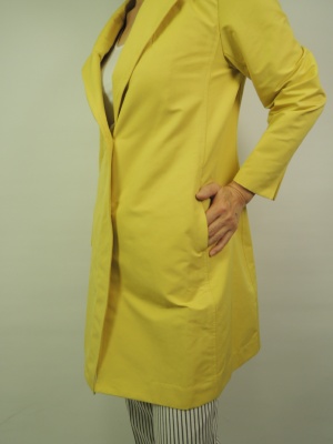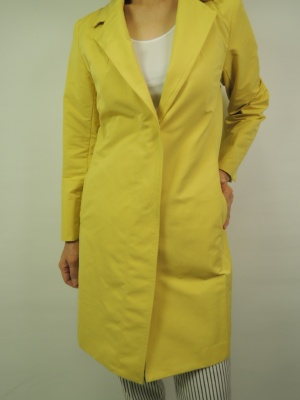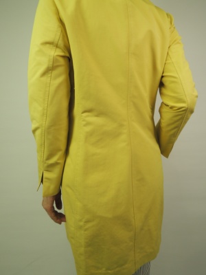 スプリングコート、裏なし、比翼ボタン 袖折り返し、脇切り込みポケット