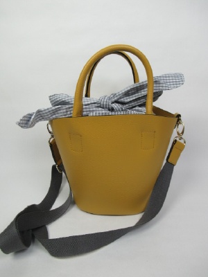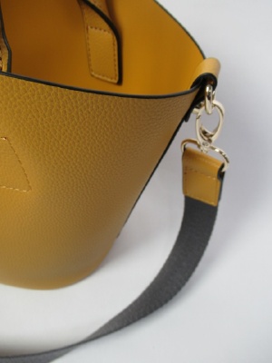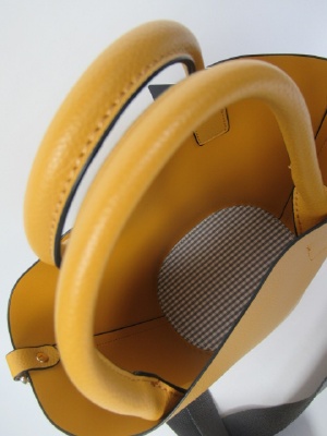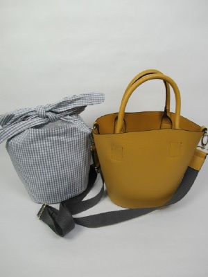 小さめのバケツ型ショルダー付きバッグ(取り外し可)、インナーバッグは取り外し可能、イエローはグレー、グレージュは黒