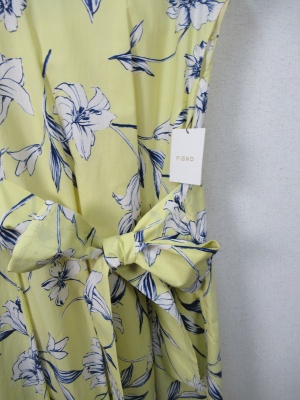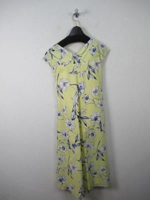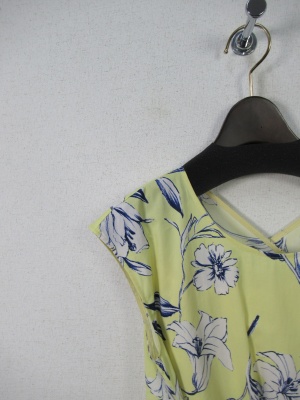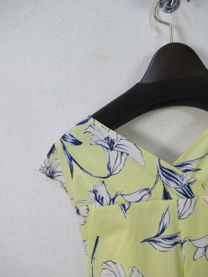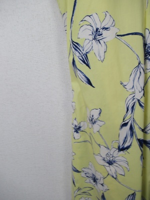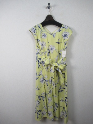 花柄の生地 脇からサッシュベルトが縫いこんであり前でリボン結び 脇にファスナーあり ペチコート付き 手洗い可能