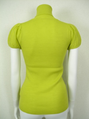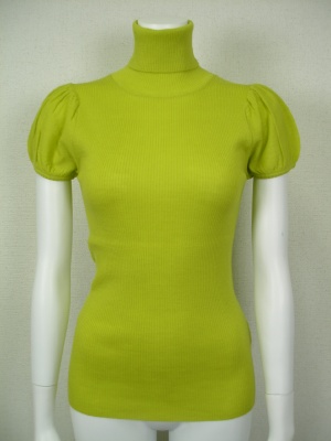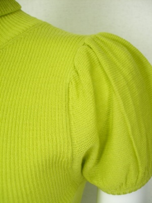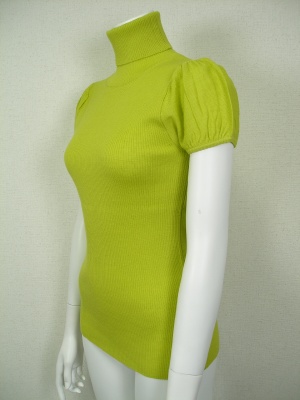 身ごろは柔らかくフィットするリブで、パフスリーブのタートルニット。ボリュームスカートにもよく合います。