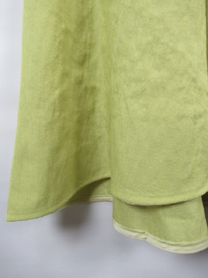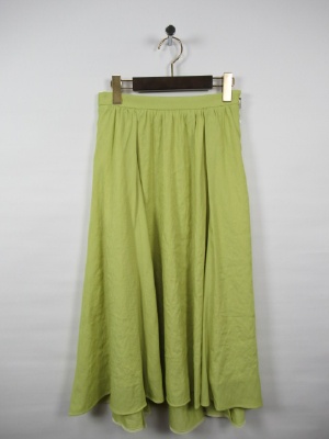 前後差のあるロングスカート ウエストゴムのギャザータイプ ポリエステルですが麻の風合いに似た生地です 裏地あり 横ファスナー