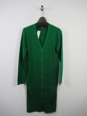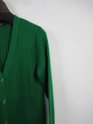 ロング丈のカーデ Vネック 太リブ編み ゴールドのボタン
