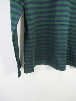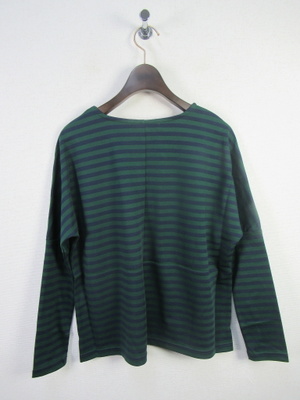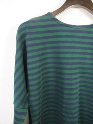 『晩夏初秋 新作』 スクエアデザインのボーダーカットソー 定番のデザイン ドルマン袖袖の肘あたりに切替あり 切替から袖口まで腕にジャストフィットするような筒の細さ 手洗い可能 前後差は無く 裾脇スリット