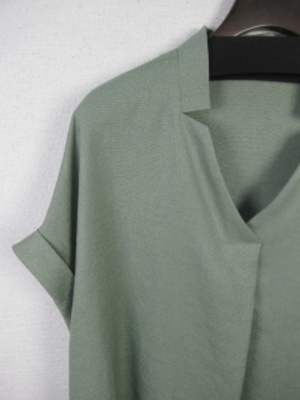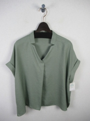 麻見えするポリエステル混の生地 手洗いできます スキッパー襟のオーバーサイズブラウス