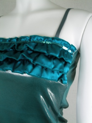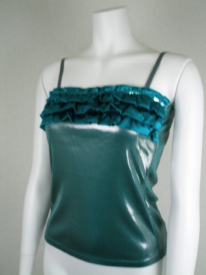 ラメ入りの生地で胸元にはフリンジ・・その上にスパンコールが飾りについてます ストラップは外せます(調節可能)