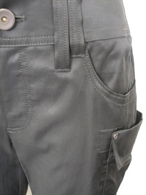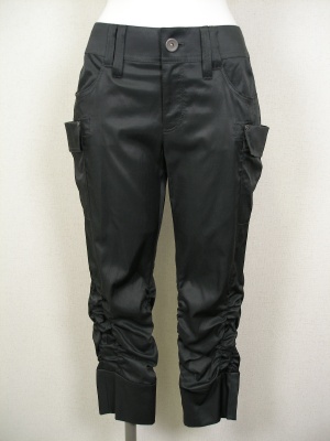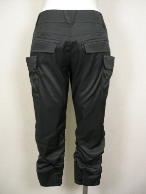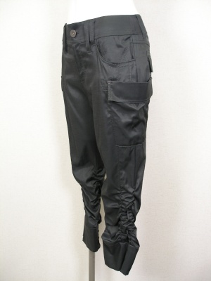 ポケットを張り出させて、裾はシャーリングでピッタリさせたサルエルパンツ。腰周りのゆとりが少なめな、合わせやすいタイプです。