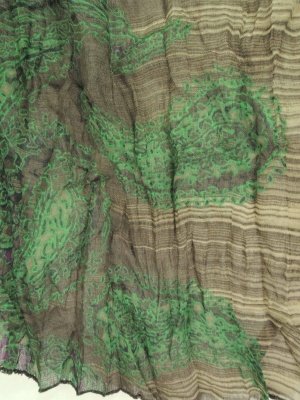ペイズリーとボーダーのナチュラルで渋めのプリント。