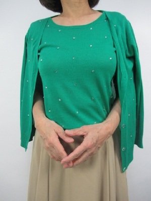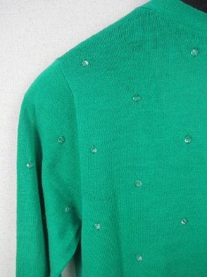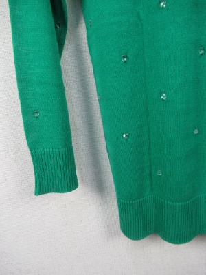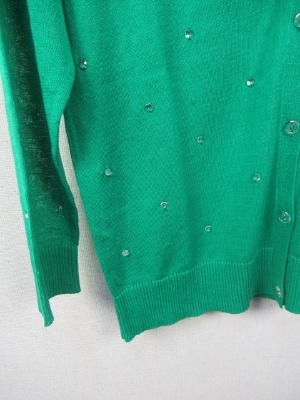 クリスタルなボタンを糸でトッピング Vネックのカーデタイプ 96933とセットになります 手洗いOK