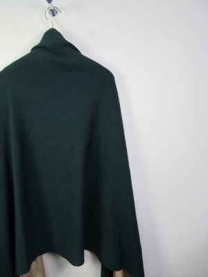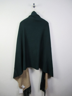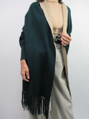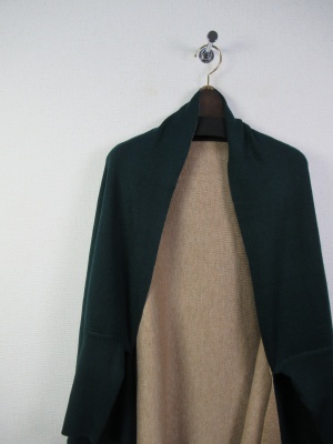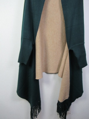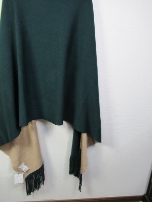 袖付きストール風ケープ リバーシブル ダークブラウンとグリーンはうらがベージュ 黒はグレーです シルバーのピンブローチ付きです