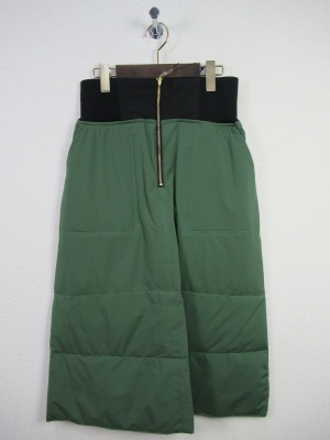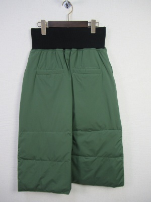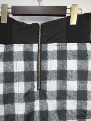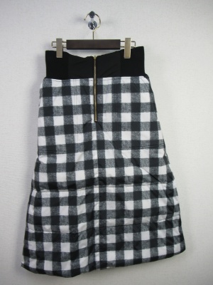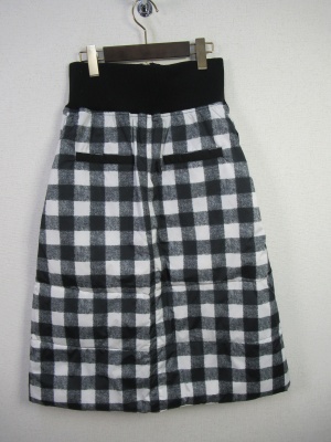 リバーシブルのダウンスカート、ハイウェスト、前ファスナー、裏地は全色チェック柄になります