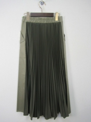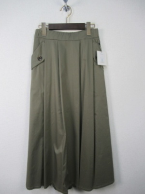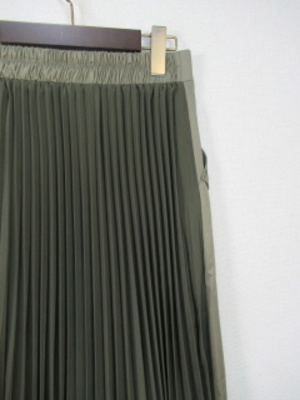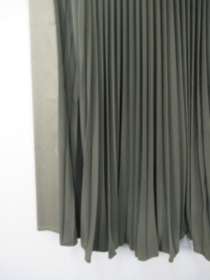 後ろは異素材生地のプリーツ 前はポケットつきのトレンチ風デザイン 裏なし ウエストゴム