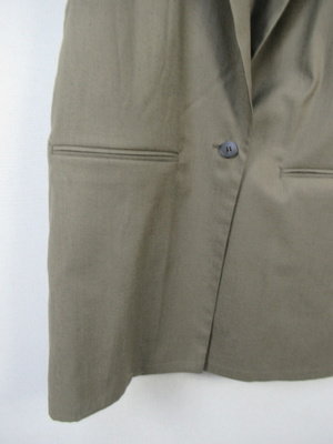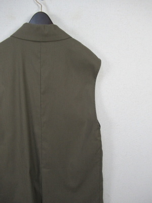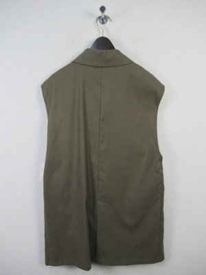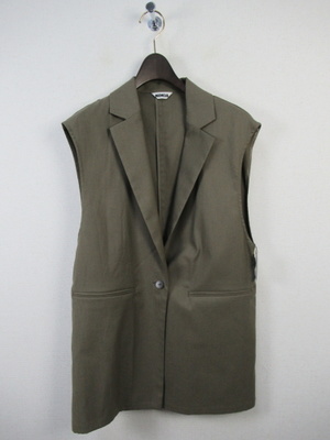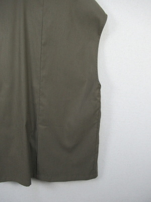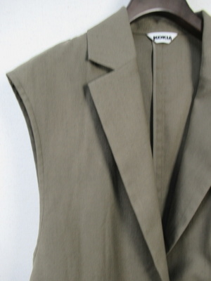 テーラード衿 フレンチ袖のジレジャケット 麻見えするポリエステル フロントポケット 後ろベントスリット 手洗い可能