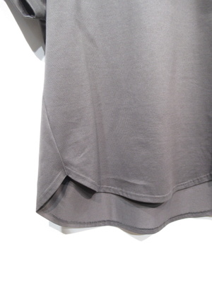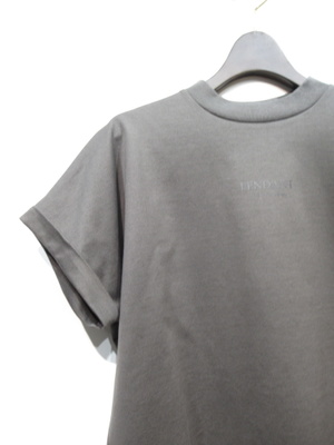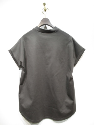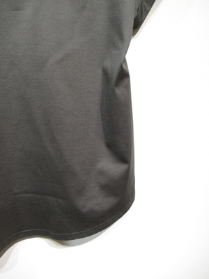 小さなロゴ入りカットソー 身頃からつながった袖 袖口折り返し 裾はラウンドシルエットで前後差有り 手洗い可能