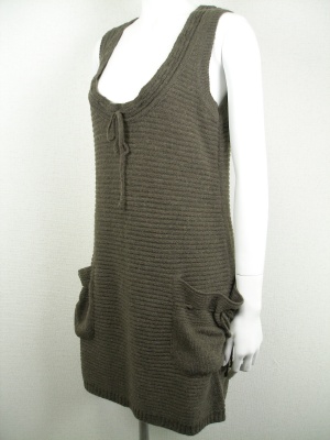 ポケットのふくらみがかわいいニットチュニック、重ね着にオススメ、色は3色