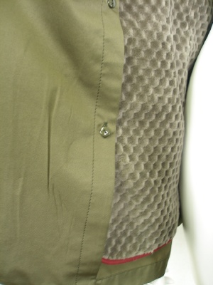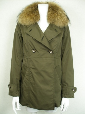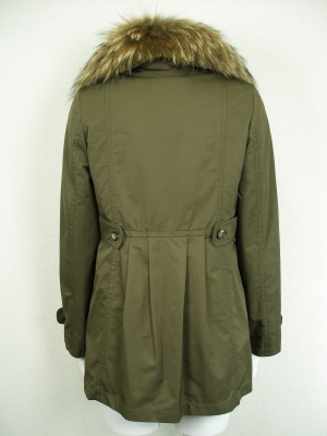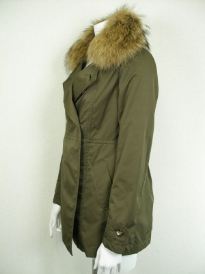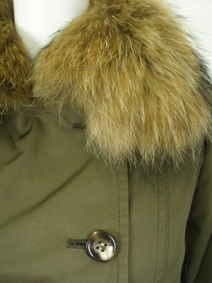起毛した暖かいライナー付きのコート。ボリュームたっぷりのファーはタヌキです。