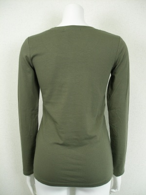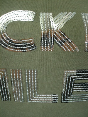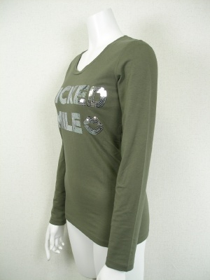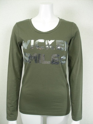 スパンコールのロゴがポイントのTシャツ。ストレッチの効いた着やすい素材です。