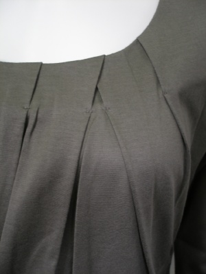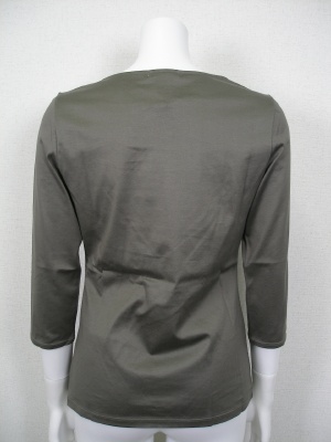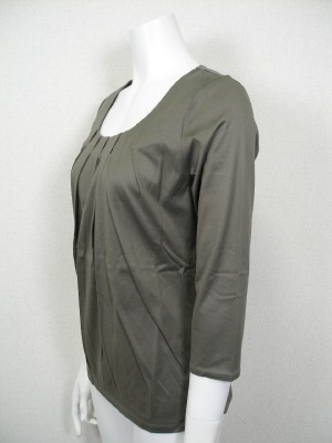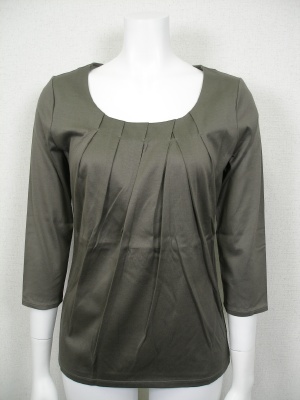 胸元にタックを寄せてややふんわりさせていますが、大きすぎずスッキリしたシルエットです。「ネイビー」のみボーダー柄。
