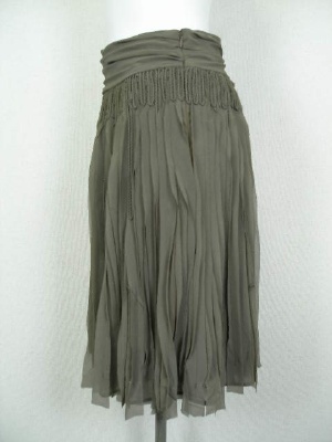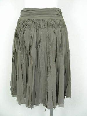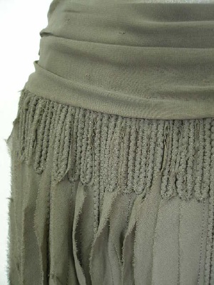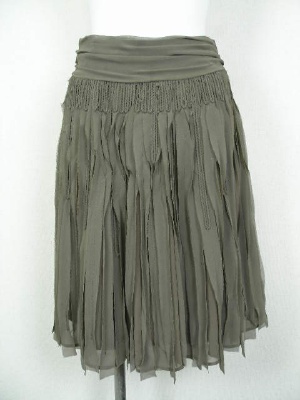 細長く断ち切りしたシフォンを、ベースとなるシフフォンスカートに縦に縫い付けたデザイン。裏地付き。
