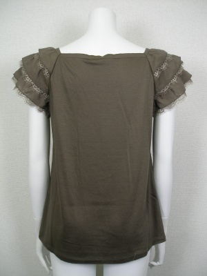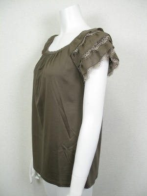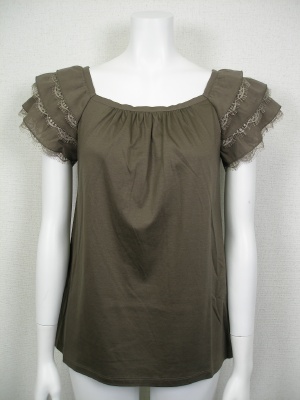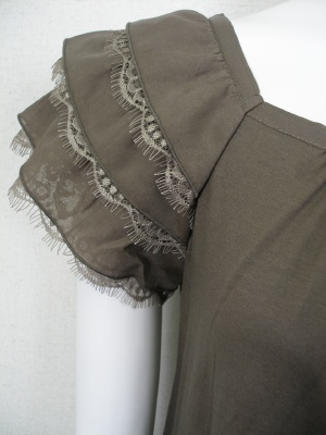 お袖のティアードは、綿70%絹30%の生地とレースを重ねています。身頃はカットソーで、Aラインです。