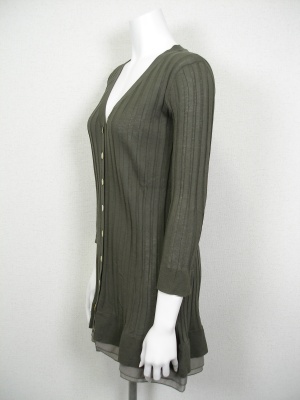 着まわしやすいシンプルなロングカーディガン。別布を使ったティアードの裾がポイント。