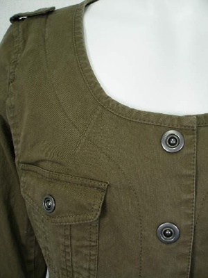 細身ですが着やすく、スカートにも合わせやすいカジュアルなジャケットです。裏地なし。