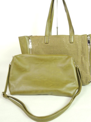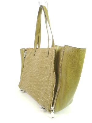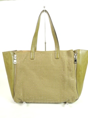 シルバーのスタッズとジッパーがポイントのトートバッグ。