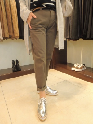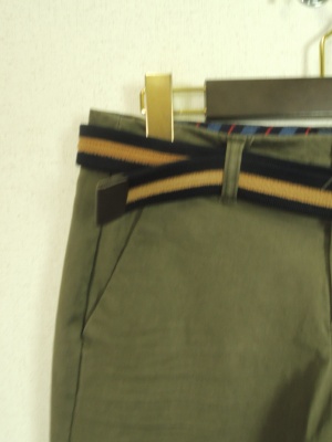 ベルト付きパンツ、今回はヒップ周りを従来のシリーズよりややゆるくしました、 今回は裾はダブルでは有りません