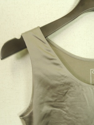 前身頃はサテン地の光沢感があるシリーズ、首周りは2枚合わせでミシン目が出ないライン