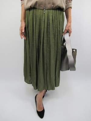 光沢感のあるサテン生地、ギャザースカート、横ファスナー、裏地あり、後ろウェスト少しゴム入り